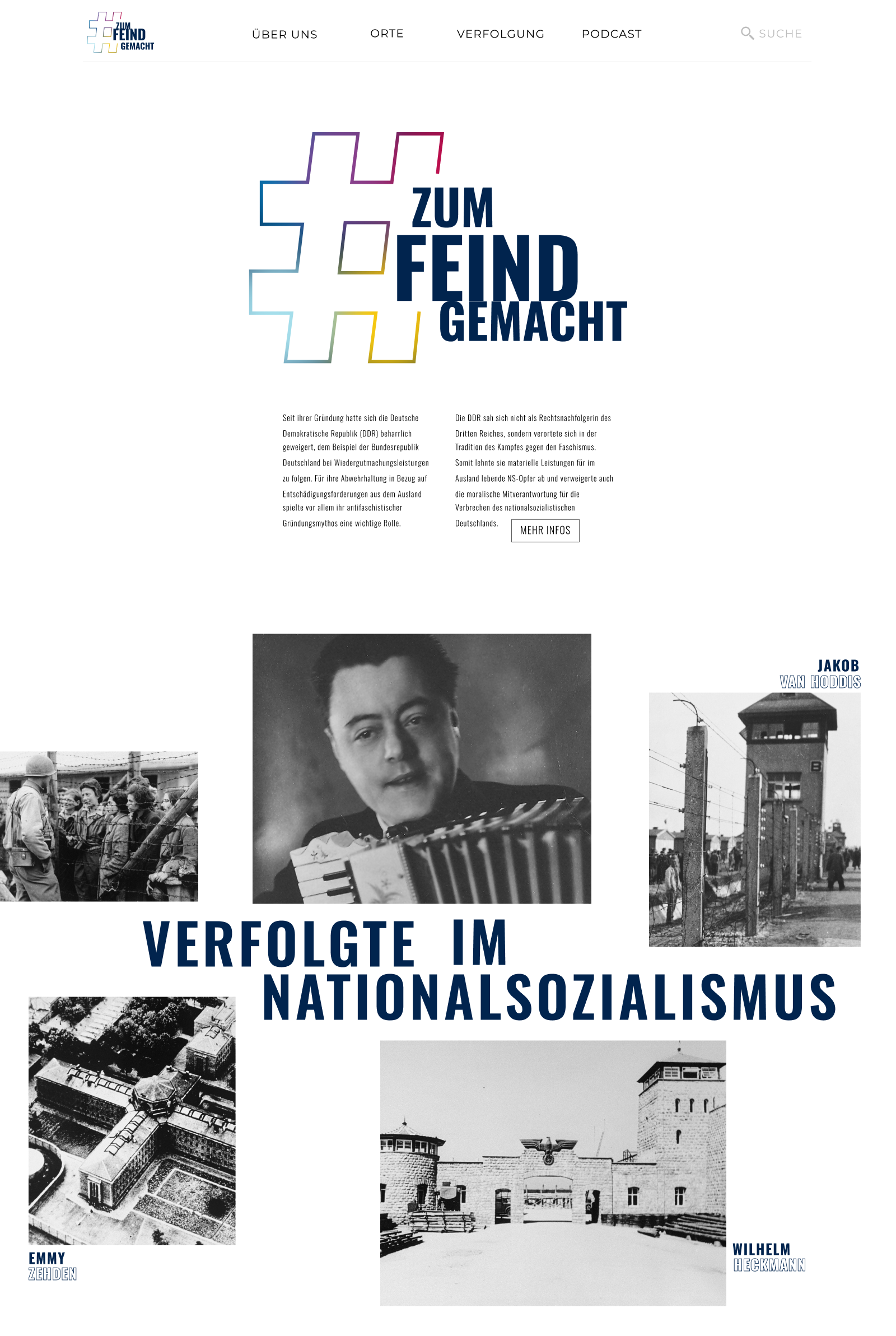 Website zur Kampagne #zumfeindgemacht – moderne, klare Gestaltung für Biografien von NS-Verfolgten mit Raum für Wirkung.